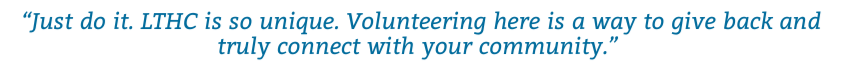 Michele’s favorite moments are the ones where guests remember her, call her by name, share a smile, start a conversation. Those small connections, she says, are everything. “LTHC offers more than food or shelter. They provide hope. They give people what they need to get back on their feet. It’s a safe place.” Her advice to new volunteers? |